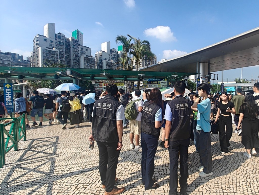 旅遊局督察24小時候命,各旅客詢問處為旅客提供資訊,旅遊熱線(853)2833 3000維持24小時運作。10月1至8日期間,共接獲35宗旅客查詢及投訴,主要涉及酒店預訂、交通及旅遊服務質素等,並接獲10宗涉及懷疑非法提供住宿的投訴,均已跟進或轉介相關部門依法處理。