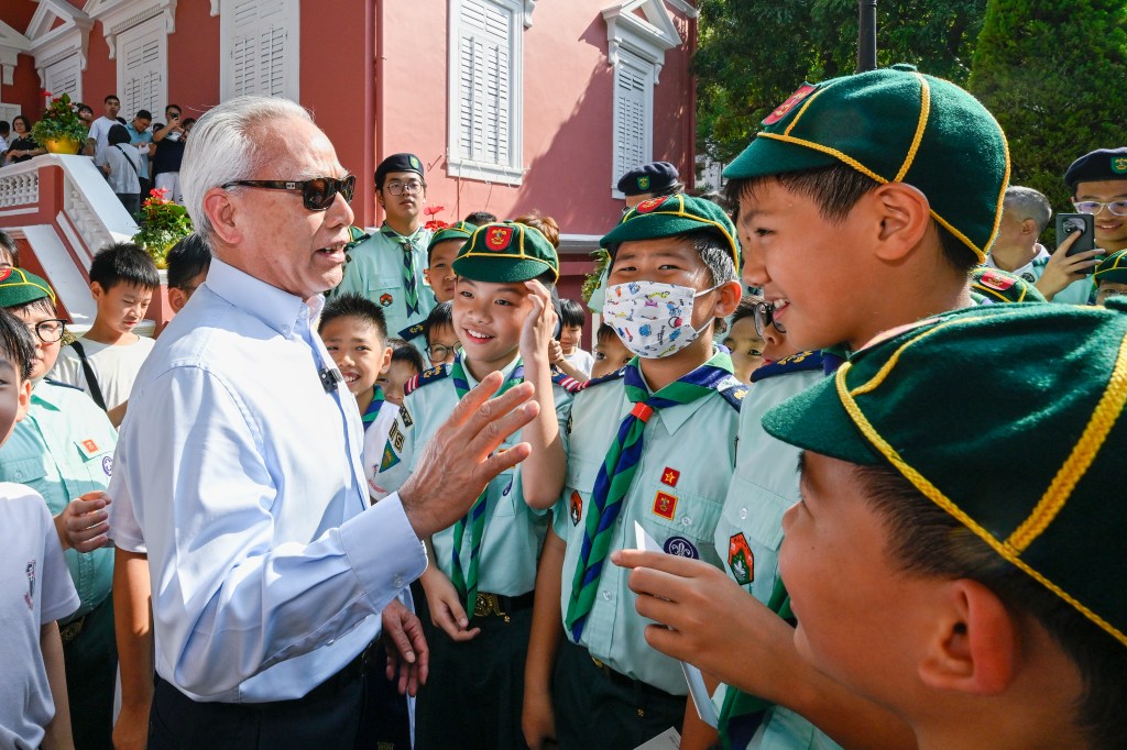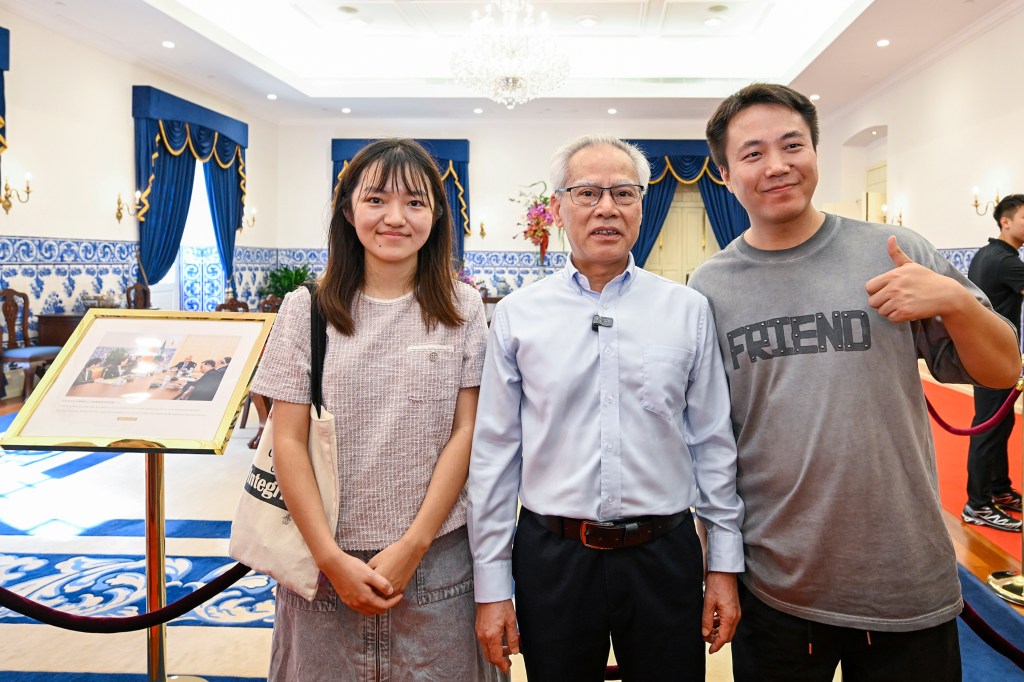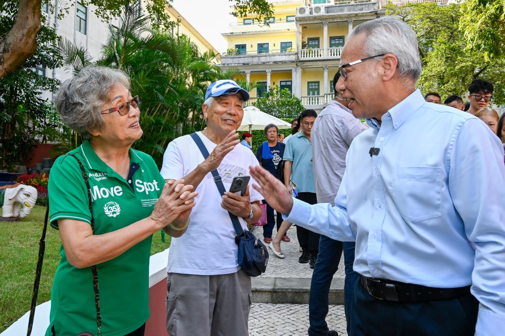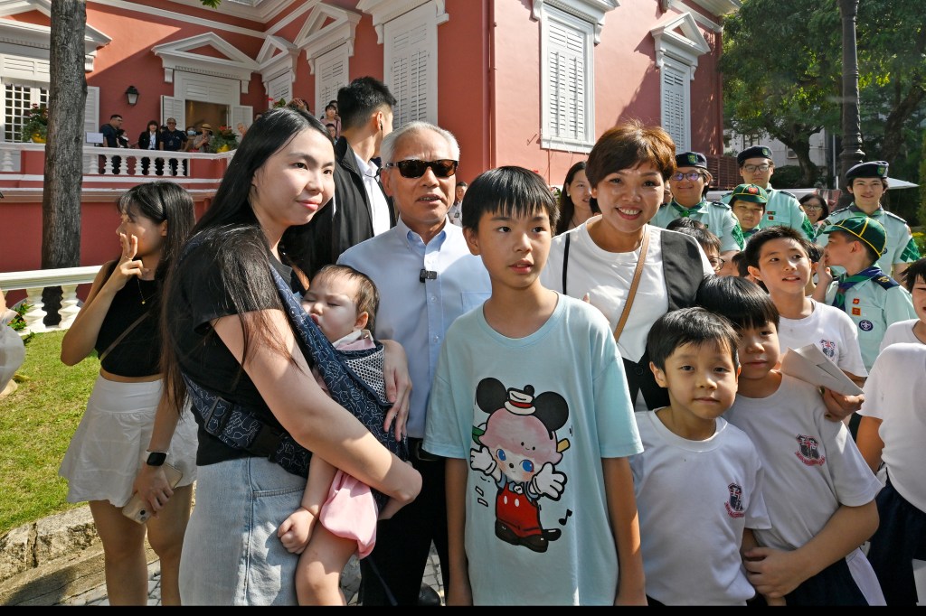 接着,岑浩輝進入禮賓樓,繼續與參觀人士互動和合影,感謝市民踴躍參與及支持開放日活動,又歡迎旅客來澳遊覽,交談中氣氛融洽。岑浩輝表示,一年一度的開放日,讓公眾加深對政府總部的認識,並對特區政府舉辦官式活動的場所有更多了解,更重要是藉此拉近市民與政府之間的距離,增進相互關係,達至攜手同行的理念,他期待兩天的開放日迎來更多訪客。
