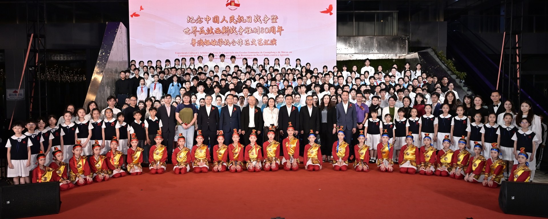 來自澳門及廣東省的12所姐妹學校齊聚一堂,包括高美士中葡中學及惠州市實驗中學,培正中學及東莞市松山湖實驗中學,培華中學、橫琴粵澳深度合作區首都師範大學子期實驗中學及汕尾市海豐縣彭湃中學,聖公會(澳門)蔡高中學及廣東肇慶中學,澳門坊眾學校、橫琴粵澳深度合作區第一中學及濠江中學的師生參與。演出節目豐富多彩,涵蓋民族管弦樂合奏、舞蹈、朗誦、合唱等多種形式,兩地學生以藝術為媒介,表達對抗戰英烈的深切緬懷以及對中華文化的創新詮釋,展現粵澳青年學生對民族歷史的深刻理解與時代擔當。