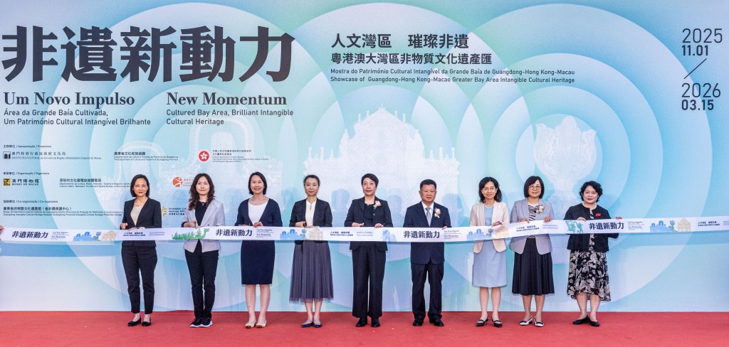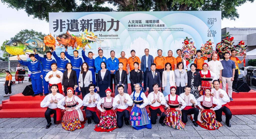 為深化粵港澳大灣區非物質文化遺產的交流和合作,由廣東省文化和旅遊廳、香港文化體育及旅遊局、澳門文化局主辦,深圳市文化廣電旅遊體育局、香港康樂及文化事務署、澳門博物館承辦,廣東省非物質文化遺產館(省非遺保護中心)及香港非物質文化遺產辦事處協辦的「非遺新動力——人文灣區.璀璨非遺:粵港澳大灣區非物質文化遺產匯」於11月1日在澳門大炮台花園開幕。