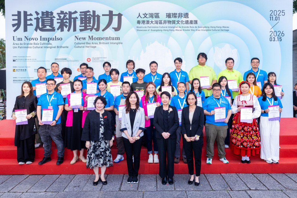 開幕式同場舉行「澳門非物質文化遺產新生代研培計劃2025」結業典禮。研培計劃為粵港澳文化合作項目,旨在提升本澳非遺傳承群體的專業能力,啟發其非遺產業化思維,推動學員成為澳門非遺傳承與創新的中堅力量。30名學員先後在澳門、廣州及香港進行理論研習和實地考察,並與粵港非遺傳承人交流傳承與創新的經驗,他們亦將參與是次活動的技藝展演,展示學習成果。學員們獲三地嘉賓頒發證書,多名非遺傳承人及學員的師父到場見證祝賀。