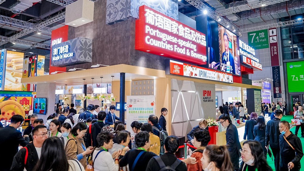 澳門招商局在進博會的「農食產品展區」以及「服務貿易展區」設置「澳門及葡語國家食品飲品館」及「澳門及葡語國家專業服務館」,共43家澳門企業參展,向上海以及世界各地與會客商展示澳門及葡語國家的特色食品、飲品、產品及專業服務。館內通過多媒體設備介紹澳琴經貿及會展產業資訊,並重點推廣《支持澳門首店經濟發展計劃》,提供相關諮詢服務。同時,場館內安排商業配對、視像諮詢、澳門及葡語國家特色美食試飲試食活動,用好進博會高度國際化窗口,助力企業對接全球商機。