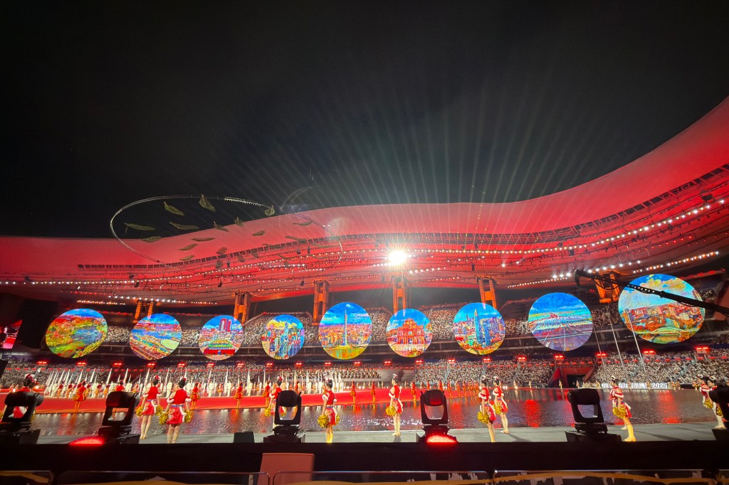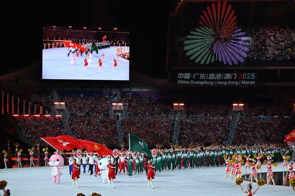 開幕式以《圓夢未來》為主題,分為「同根同源」、「同心同緣」、「同夢同圓」三個篇章,長達75分鐘的文體匯演巧妙融合了廣州小蠻腰、香港維多利亞港與澳門大三巴等地標,象徵三地血脈相連、同心同行。壓軸的聖火點燃儀式中,來自粵港澳三地的運動員接力傳遞火炬,最終由中國「飛人」蘇炳添、香港劍擊名將張家朗及澳門史上首位亞運金牌得主李禕(LI YI)共同點燃主火炬塔,宣告一連13天的全運盛會正式展開。