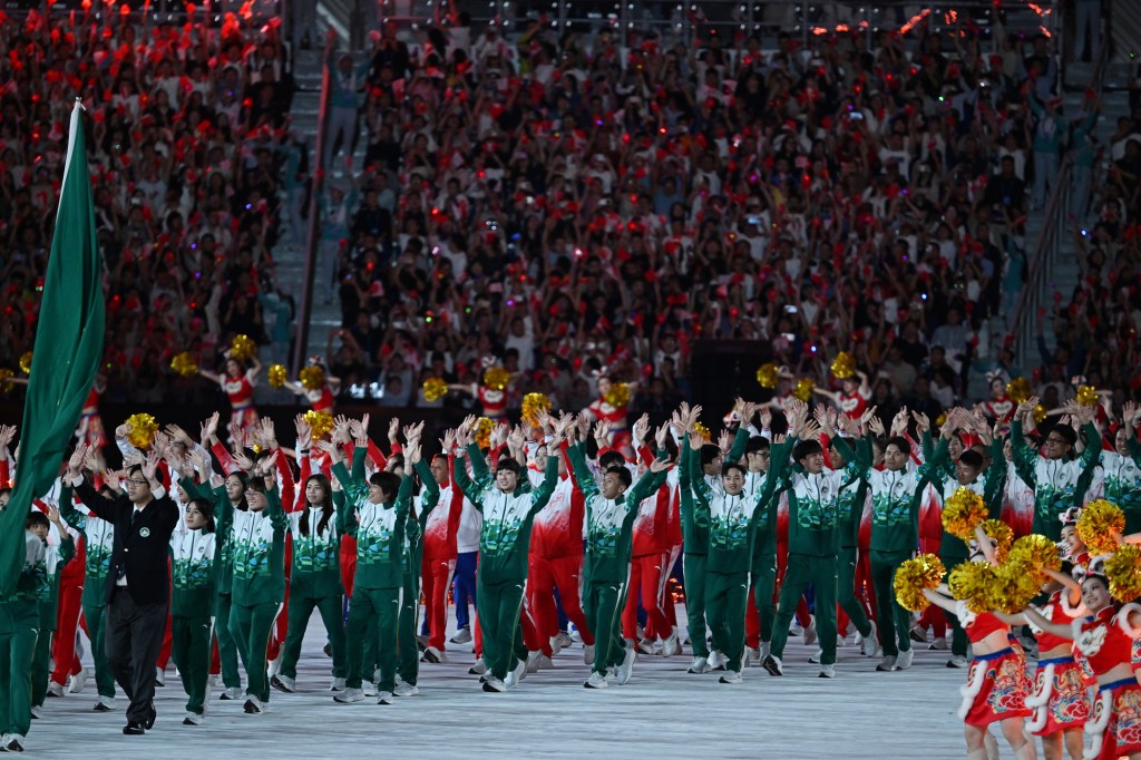 入場儀式中,各省市及行業體育協會代表團依次進場,壓軸登場的粵港澳三地代表團最受矚目。澳門體育代表團由武術運動員王泳欣(WONG WENG IAN)擔任持旗手,聯同廣東及香港代表團作為東道主壓軸入場,全場觀眾起立歡呼,掌聲經久不息。