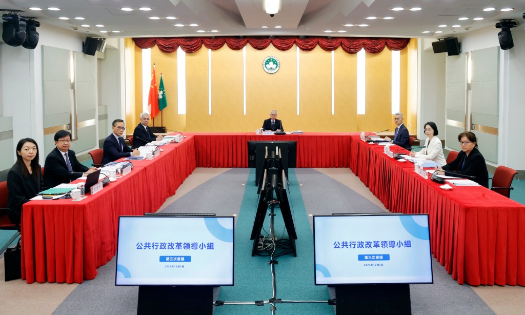 行政長官岑浩輝近日召開並主持公共行政改革領導小組第三次會議,總結本屆特區政府近一年來推進公共行政改革的首階段工作,並就下一步改革的整體方向、目標及措施聽取各施政範疇的意見,以及作出決策部署。
