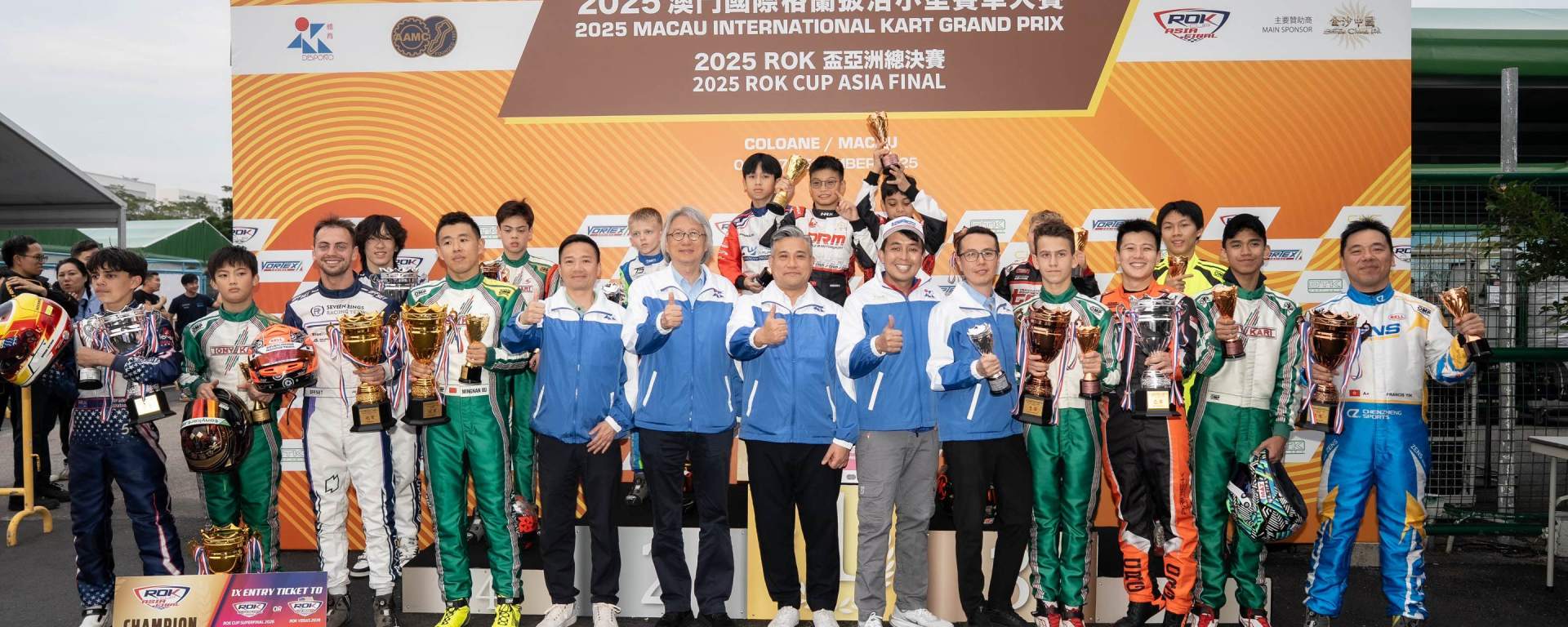 賽事結束後進行頒獎儀式,頒獎嘉賓包括:體育局代局長李詩靈、中國-澳門汽車總會會員大會主席鍾國榮、金沙中國有限公司行政副主席王英偉、體育局副局長莫子恆、中國-澳門汽車總會理事長何比道、體育局澳門格蘭披治大賽車及大型體育活動廳廳長黃家權、OTK小型賽車亞洲區總經理Brendan Lim、澳門可口可樂飲料有限公司巿務部經理陳穎琪。