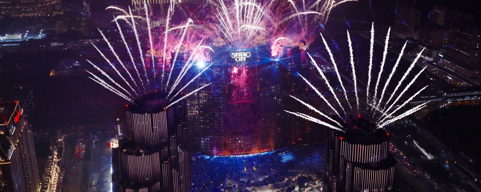 盛典尾聲,嘉賓們齊聚新濠影滙盛會庭園,共同欣賞壓軸呈現的煙花滙演。晚上10時,融合電影經典配樂、燈光特效、火花機及鐳射裝置的視聽盛宴璀璨上演。超過兩萬發煙花以天為幕,璀璨綻放于路氹金光大道上空,以震撼視聽的極致盛宴為盛典畫上圓滿句號。在場賓客共同見證了澳門新濠影滙10周年的輝煌里程碑,懷著對未來的美好期許,攜手開啟嶄新的光影旅程。