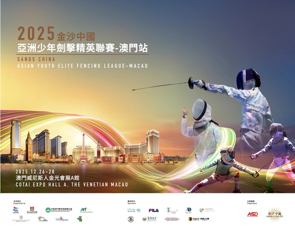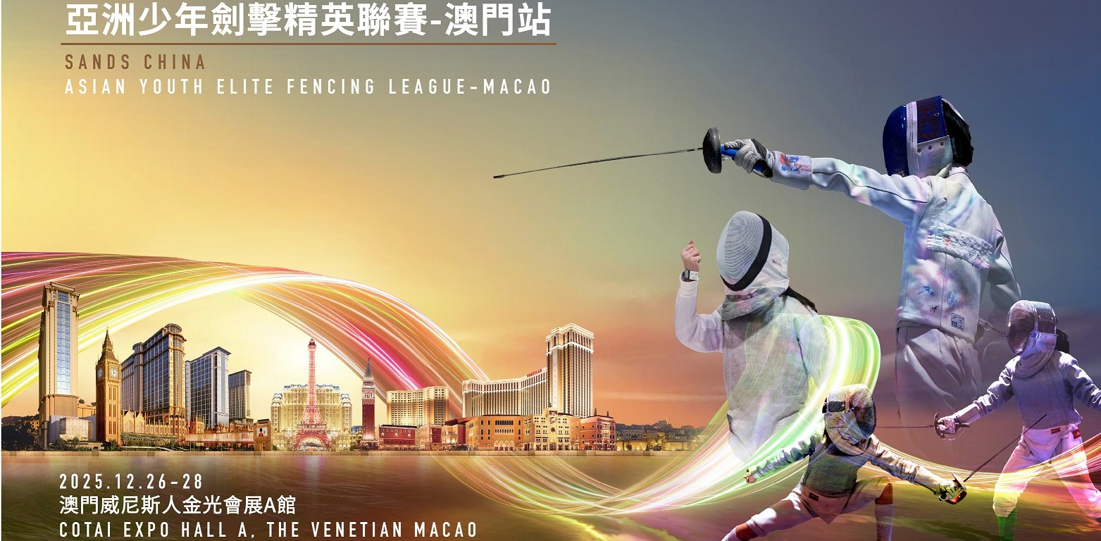 金沙中國有限公司與亞洲體育發展有限公司將於12月26至28日再度攜手,於澳門威尼斯人金光會展A館隆重舉辦「2025金沙中國亞洲少年劍擊精英聯賽–澳門站」,繼續為亞洲劍壇青年精英提供一展身手的舞台,助力推動澳門「體育之城」的建設,為培育新一代劍壇人才貢獻力量。此外,本屆賽事期間舉行一系列精彩豐富的延伸活動,現場更精心設置60個美食與運動品牌攤位,歡迎公眾免費入場,一同感受賽事的熱熾氣氛。