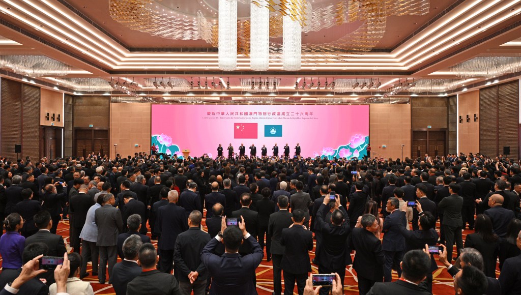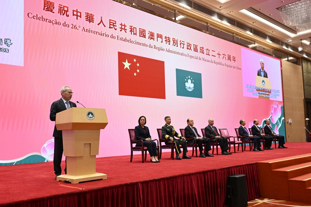特區政府於12月20日舉行慶祝中華人民共和國澳門特別行政區成立26周年招待酒會。行政長官岑浩輝致辭時表示,二十屆四中全會擘畫了國家發展的新藍圖,中央「十五五」規劃建議對澳門未來發展作出了重要戰略部署,為特區發展提供了新的巨大機遇和政策動能。澳門將遵照習主席的重要指示,更加積極主動對接國家發展戰略,制定好、實施好澳門特區「三五」規劃,在服務強國建設、民族復興的新征程中,實現自身更好發展。