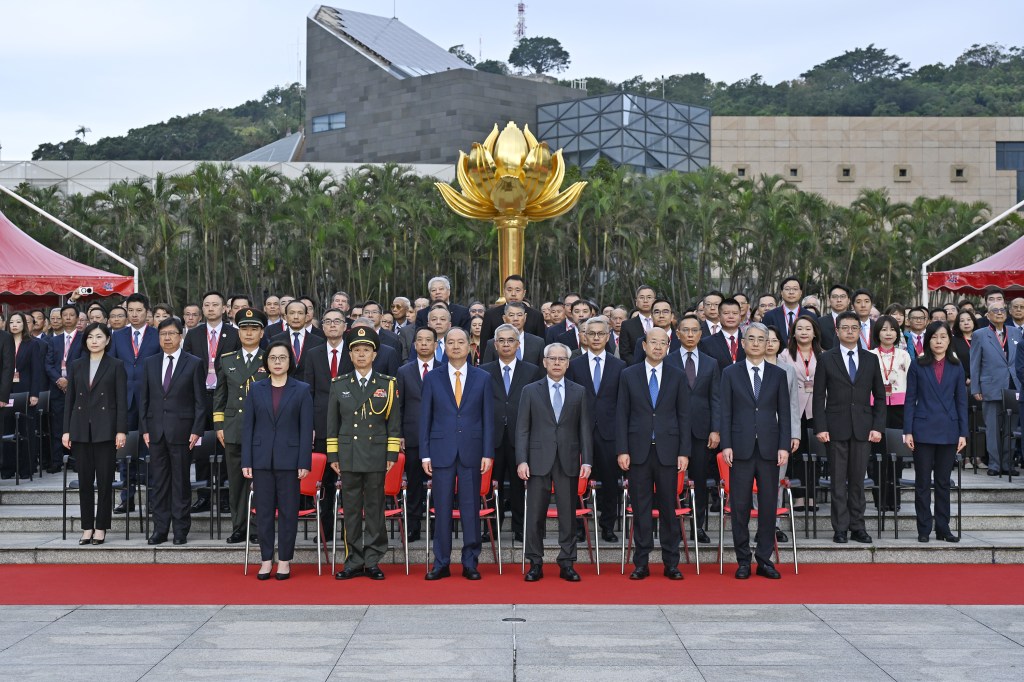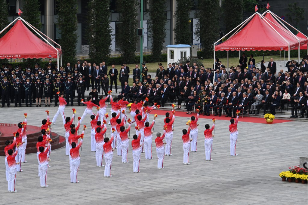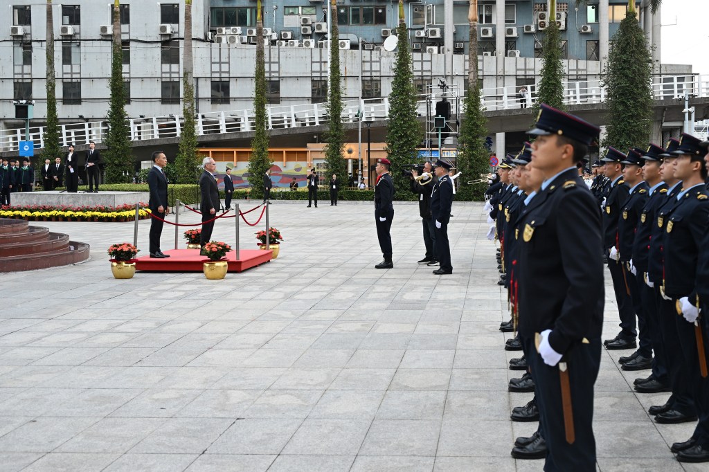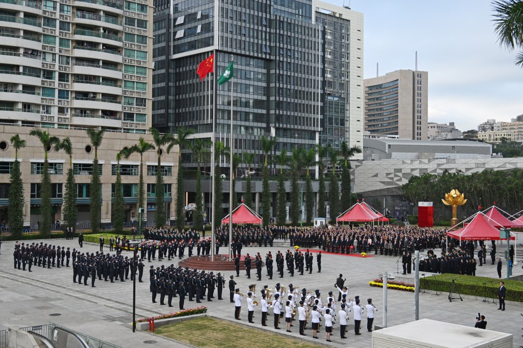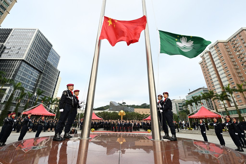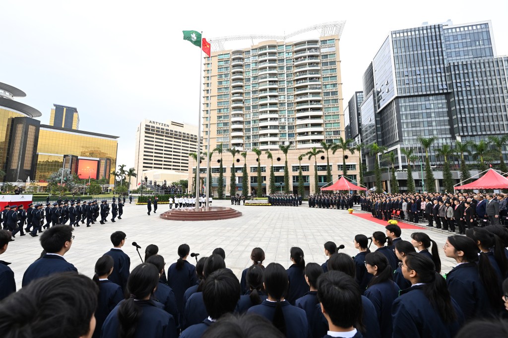 招待酒會前,特區政府當天早上8時在金蓮花廣場舉行慶祝中華人民共和國澳門特別行政區成立26周年升旗儀式,行政長官、中央駐澳機構負責人、特區立法及司法機關負責人、政府主要官員、行政會委員、立法會議員及各界人士等約550人出席。