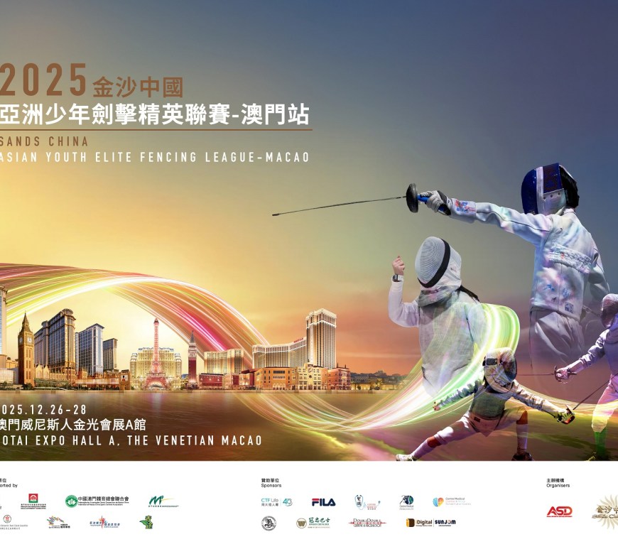 金沙中國有限公司與亞洲體育發展有限公司將於12月26至28日再度攜手,於澳門威尼斯人金光會展A館隆重舉辦「2025金沙中國亞洲少年劍擊精英聯賽–澳門站」,繼續為亞洲劍壇青年精英提供一展身手的舞台,助力推動澳門「體育之城」的建設,為培育新一代劍壇人才貢獻力量。此外,本屆賽事期間舉行一系列精彩豐富的延伸活動,現場更精心設置60個美食與運動品牌攤位,歡迎公眾免費入場,一同感受賽事的熱熾氣氛。
