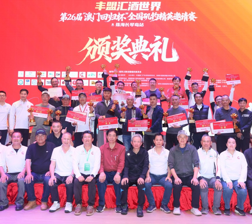 由澳門戶外休閒體育總會、珠海葉嘉旅遊服務有限公司主辦,冠軍之路全國組織委員會指導,豐盟匯酒世界冠名的《第二十六屆「澳門回歸杯」全國磯釣精英邀請賽》於十二月七日在珠海市長琴島圓滿收官,兩岸四地二十多個地區五十八支隊伍,一百一十六名海釣好手經過一連兩日的較量後,海南島隊獲團體總重量冠軍。賽事踐行「遊艇兩杆經濟」理念,推動「體育+旅遊」融合發展。本屆大賽獲廣東省遊艇行業協會海釣聯合會授予「兩杆經濟創新實踐獎」,以表彰澳門戶外休閒體育總會在踐行「兩杆經濟」理念方面的突出貢獻。負責人表示,活動達到預期效果,進一步加強澳門與各地團體及釣友的交流學習,增進友誼,傳遞愛護環境、保護海洋的理念,以及宣傳推廣澳門。下屆「澳門回歸杯」將落戶福建霞浦,再續海釣輝煌篇章。