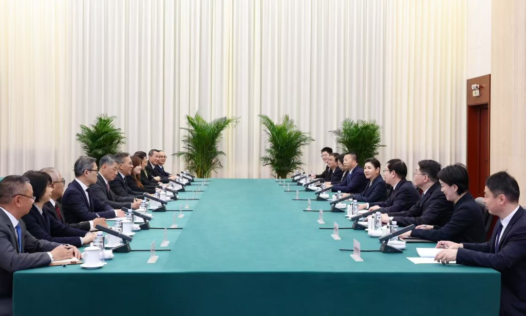 中共中央港澳工作辦公室、國務院港澳事務辦公室副主任農融參加會見。