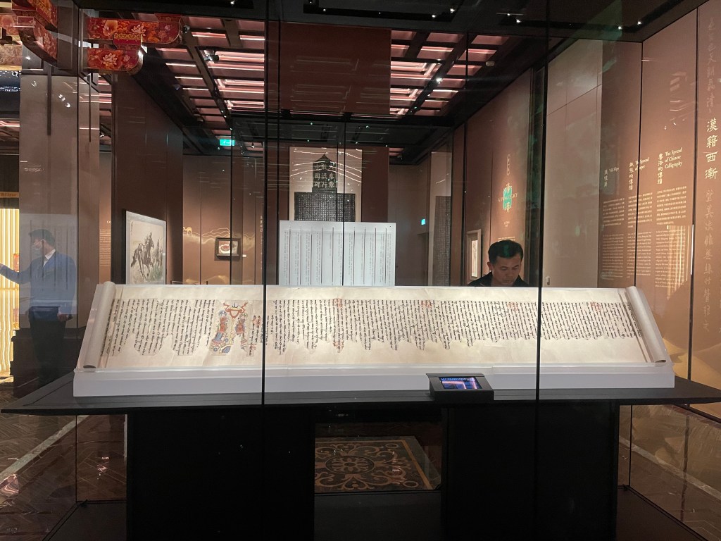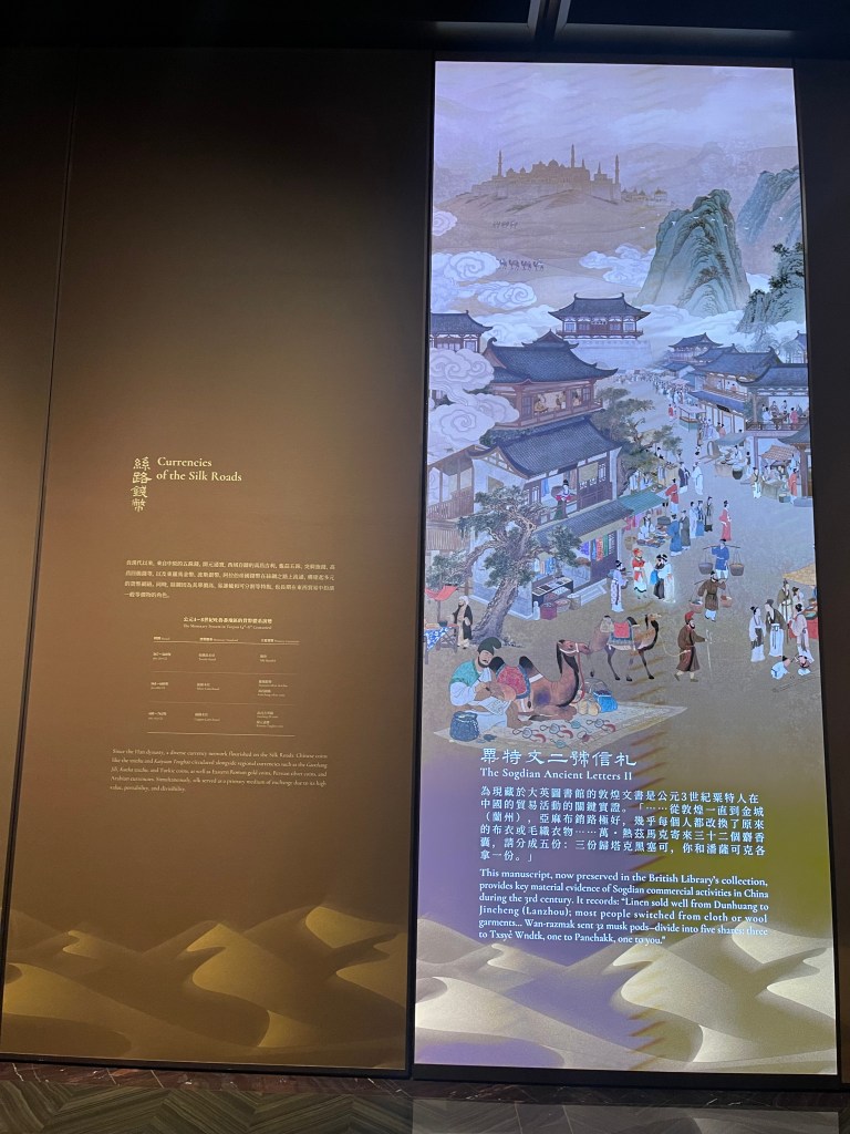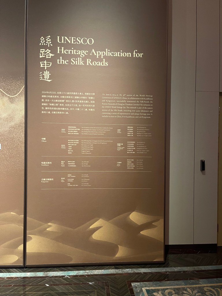 因此,駱駝可以是一個起點,但「路」的運作離不開秩序與制度。展覽中的「瓜州都督府給西州百姓遊擊將軍石染典過所」仿製品,恰好把絲路從浪漫想像拉回到行政現場:通關、查驗、人數與貨物的對照,意味著絲路不是「偶然的相遇」,而是被治理、被維持、被監管的流動。這份紙本憑證的存在提醒我們,任何跨地域的繁榮背後,都有一套低調卻強大的制度技術在支撐,它不如金銀器耀眼,但沒有它,就沒有穩定的往來。
