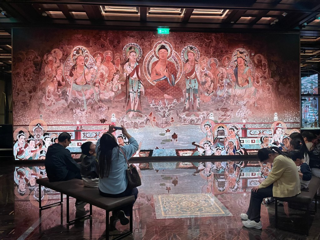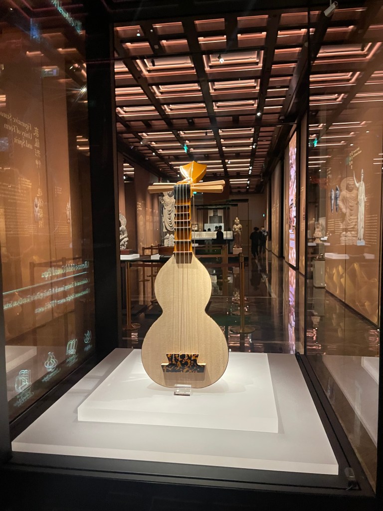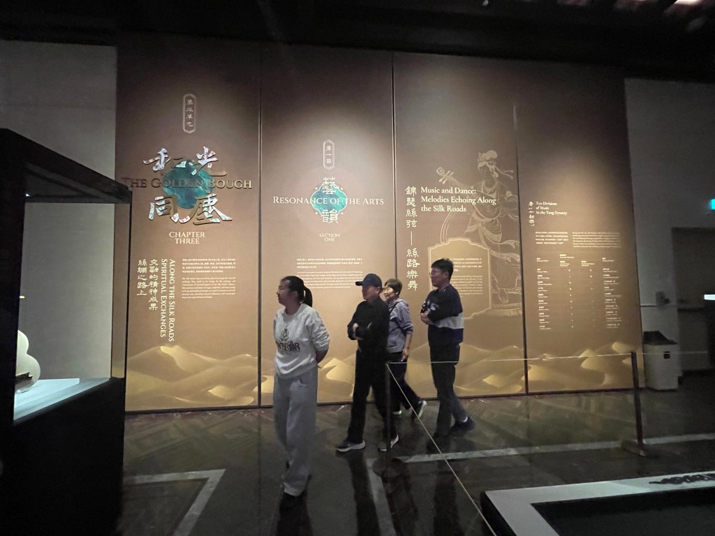 這也是為什麼是次展覽強調「沉浸式數字體驗」與「夜遊」劇目化活動:它們不是噱頭,而是一種把知識轉化為身體經驗的策展語言,讓觀眾在聲音、光影、動線與互動中「進入」絲路,而不只是「觀看」絲路。更重要的是,展覽把音樂也納入敘事,包括譚盾多年研究復原的古絲路樂器(如鳳首箜篌、五弦琵琶、反彈琵琶等),以現代交響語境讓「絲路之音」再度發聲。這讓絲路不再只是物件的歷史,而是感官可被喚醒的「在場」。