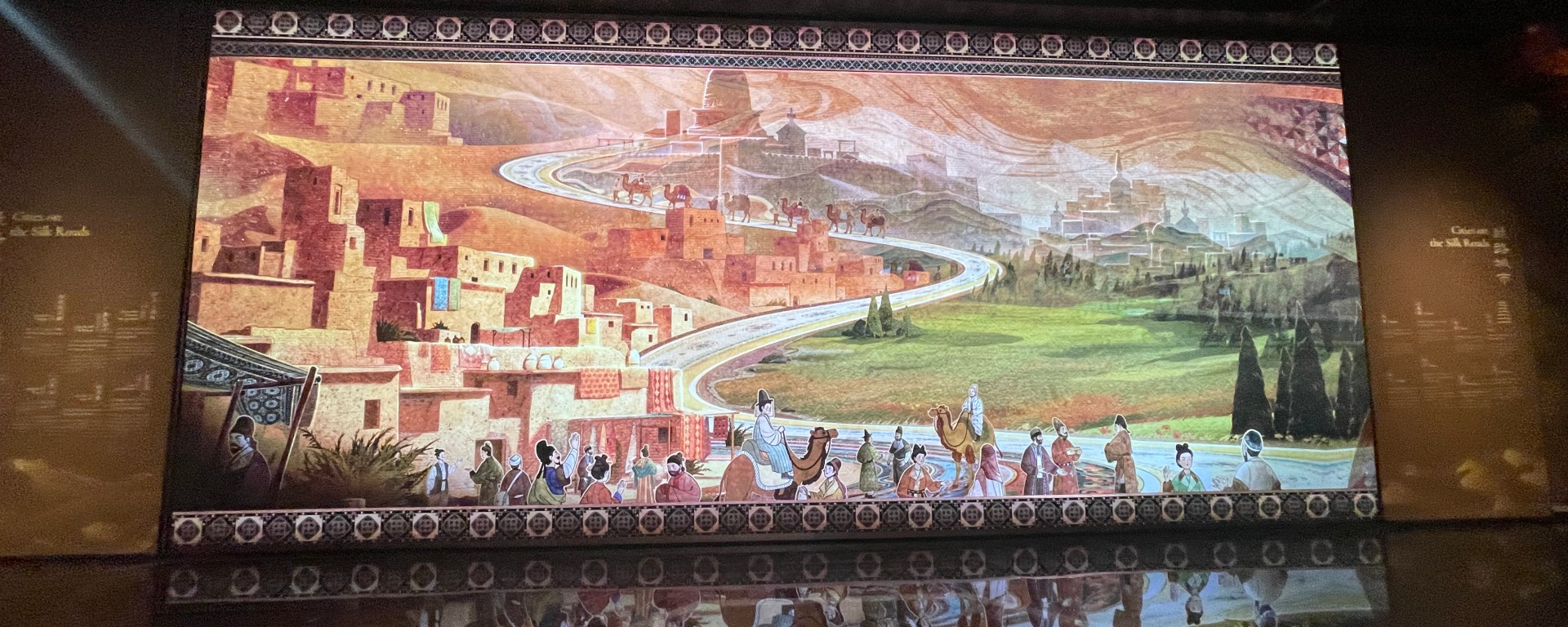 展覽以四大單元鋪陳脈絡︰「瀚海西風」、「星漢燦爛」、「和光同塵」、「大道錦程」。從開拓、到技術與生活、到精神與審美、再到古今互證的當代表達,形成一條從「鑿空」走向「未來」的敘事線。這種策展策略的關鍵,是不把絲路理解為某條固定路徑,而是把它視作一個長期運作的交流系統:貨物、工藝、宗教、法律制度、音樂與圖像語言,都在系統中流通、改寫與再生。在展廳裡看到不同時代、不同地域的作品彼此對話,像多語世界的同場翻譯,有時互相補全,有時互相挑戰,但幾乎總能讓觀眾意識到:文明的邊界從來不是牆,而是接縫。