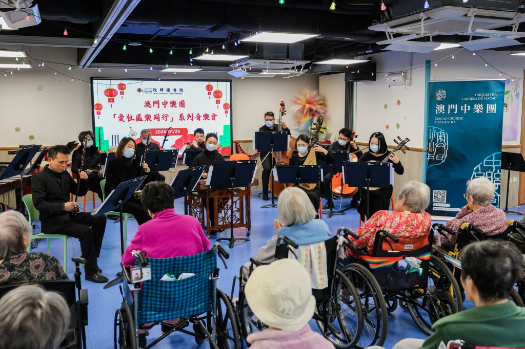 澳門中樂團冬日舉行多場系列音樂會,分別走訪多所院舍與社區中心,以及澳門天主教聖若瑟勞工主保堂,以悠揚樂韻溫暖社區,與近400名市民及長者共度充滿藝術氣息的冬日午後與晚上。