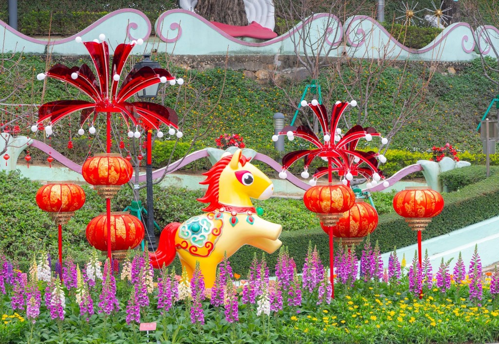 今年是丙午馬年,花展將以馬年裝飾為主題,搭配各色大麗花及其他帶有吉祥如意的賀年花卉作展示,組成層次豐富的花海,營造繁花繽紛的視覺效果。同時,展場共設有五個打卡點,包括「福馬報春」、「飛檐燈巷」、「八景燈集」、「竹燈納福」及「剪紙馬市」,市民可融入精緻的花境拍照打卡留念,讓市民及遊客感受濃厚的新春節日氣氛,共度佳節。