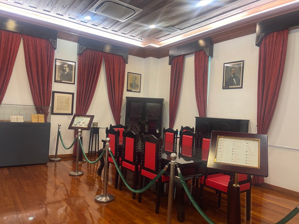 二樓展覽則回到建築本身的行政記憶。第六展室「海島市政廳」保留會議室模擬場景,牆上懸掛不同時期澳督畫像,如施華利與巴波沙等,營造出昔日行政氛圍。透過圖文說明,觀眾得以理解海島市政廳在離島治理中的角色與制度演變。