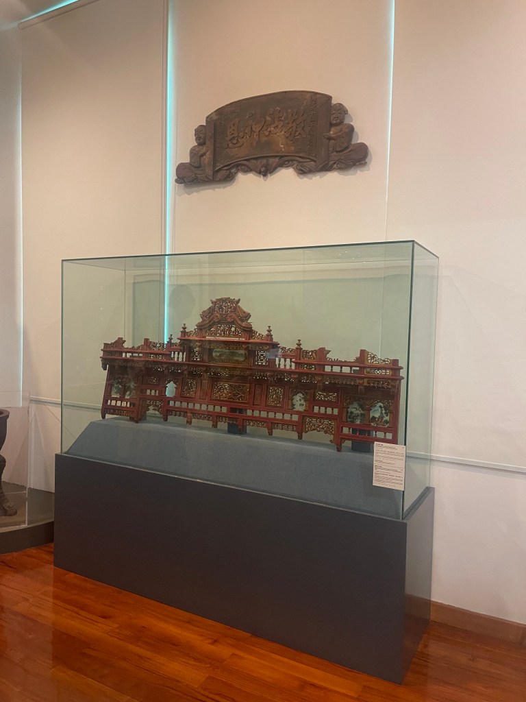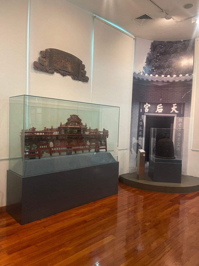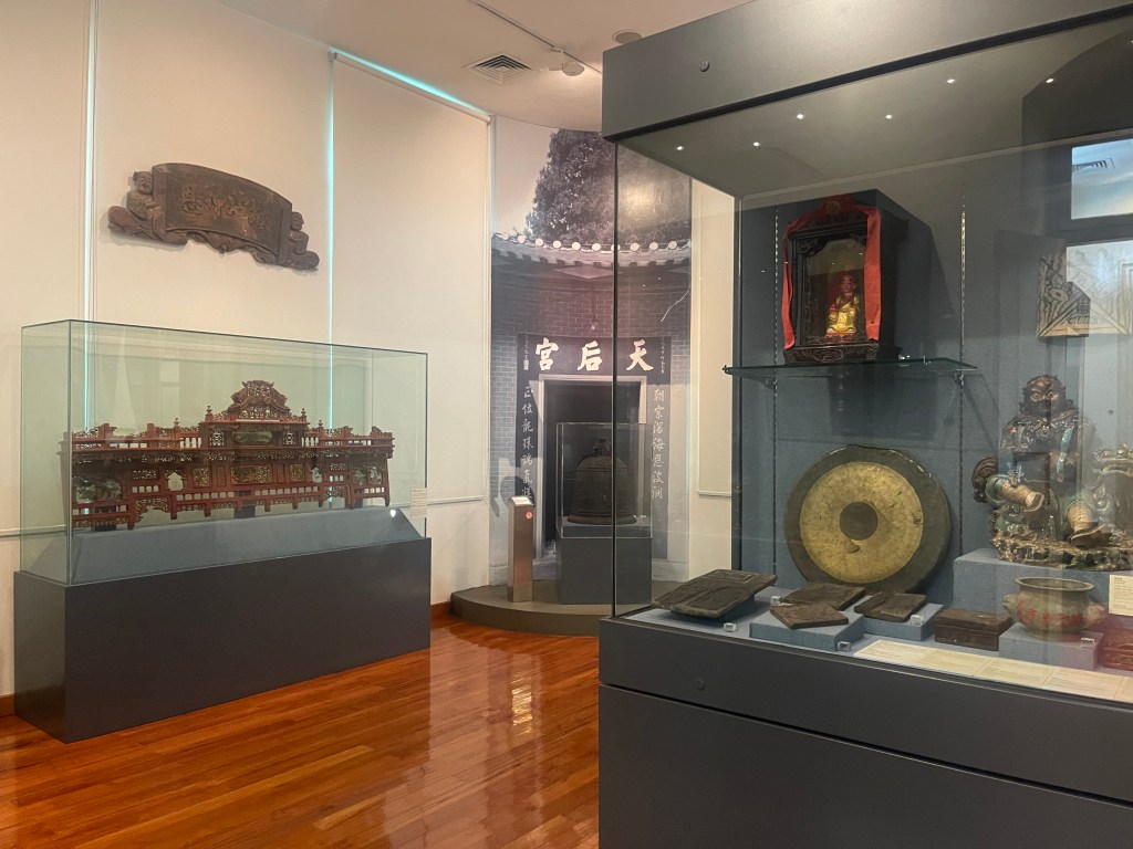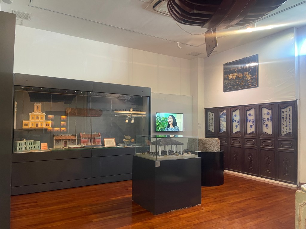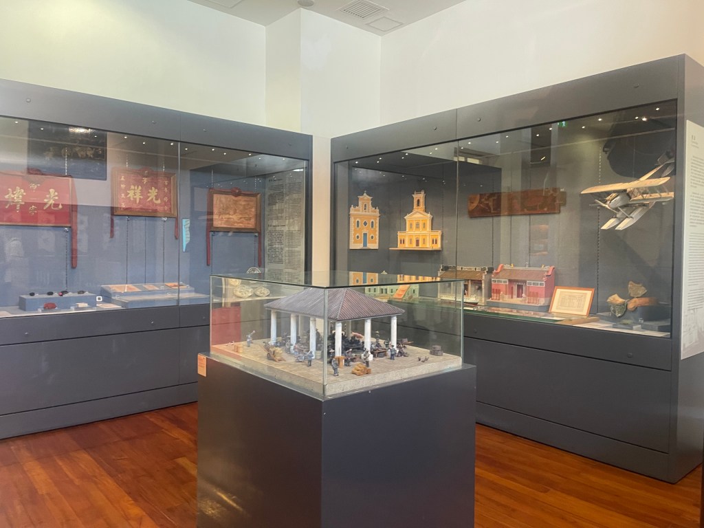 第九展室總結「路氹建築特色」、「路氹的發展」與「路氹的綠化」。嘉模聖母教堂、北帝廟等建築模型,體現中西融合的建築語言;澳氹大橋模型則象徵半島與氹仔首次陸路連接的重要節點。展區同時提及城市綠化與公園建設,說明在大型基建與經濟高速發展背景下,路氹仍嘗試兼顧環境保護。