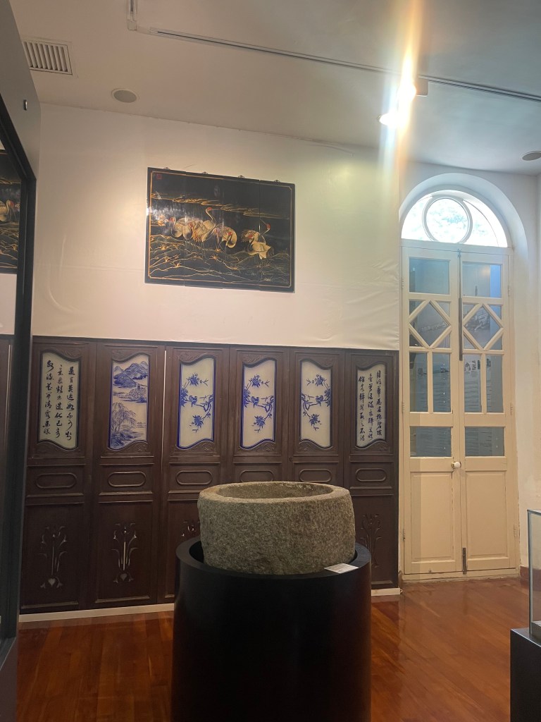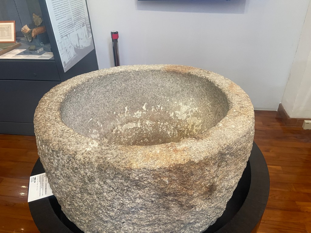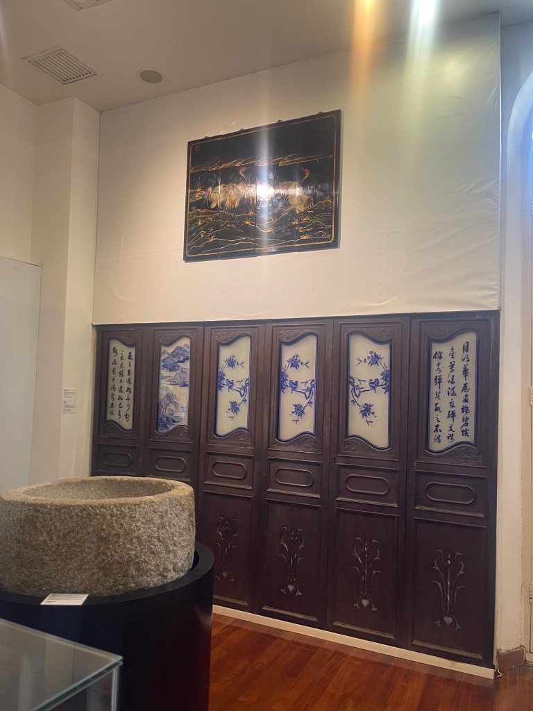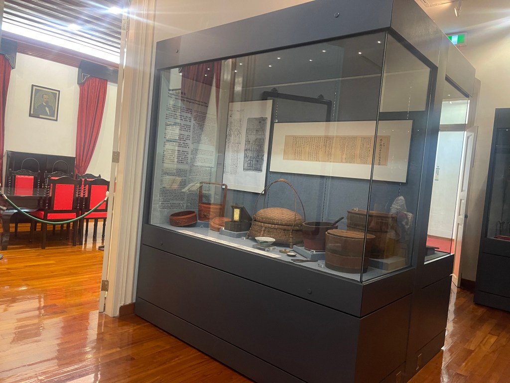 第三展室分為「路氹地域變遷」與「路氹村落變化」兩個面向。古籍地圖展示路氹從分散村落、海上交通為主的島嶼空間,逐步轉向與半島相連的城市結構。村民生活器具,如磨盆、嫁妝套籃、新娘鏡匣等,則呈現社會組織與家庭文化的日常層面。地理變化與生活細節並置,使歷史不再停留於宏觀敘事。