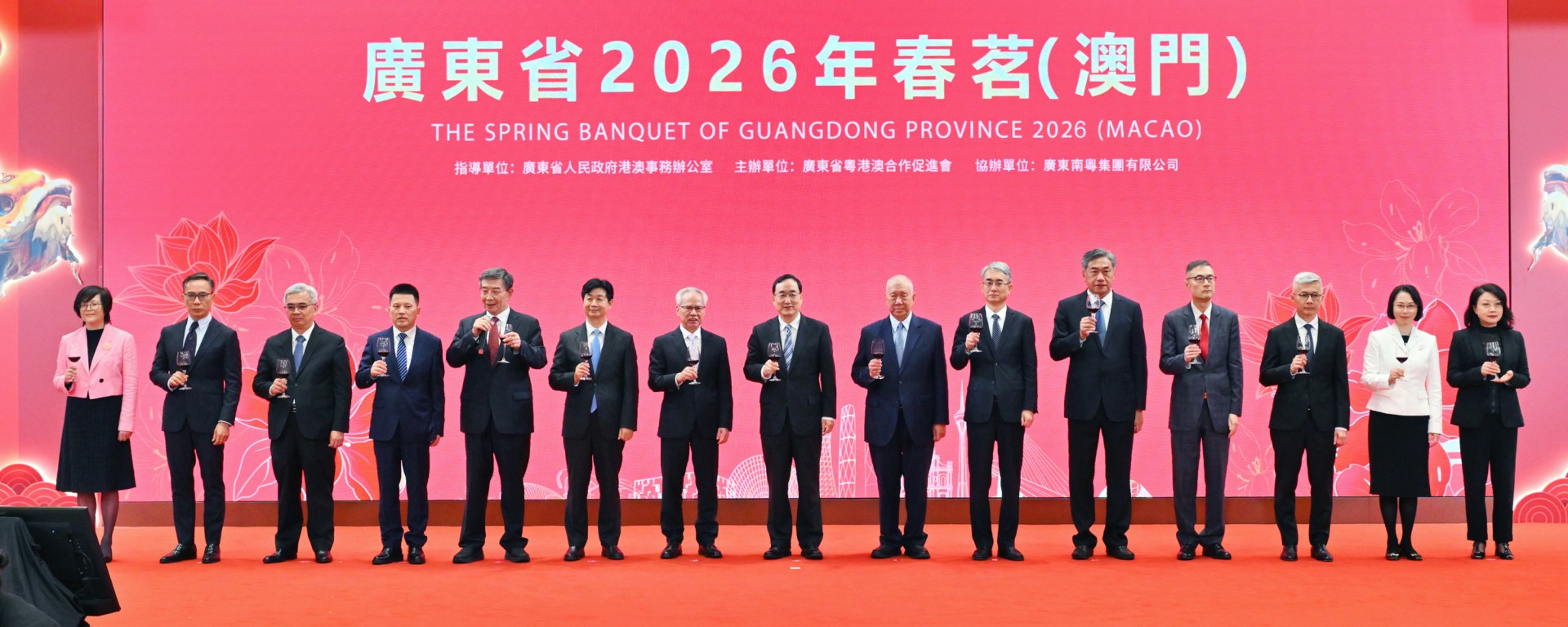 廣東省2026年春茗(澳門)於3月20日在澳門旅遊塔舉行,粵澳各界新老朋友齊聚一堂,共敘情誼、共謀合作。澳門特區行政長官岑浩輝、廣東省委常委兼統戰部部長王曦出席並致辭,全國政協副主席何厚鏵亦有出席。