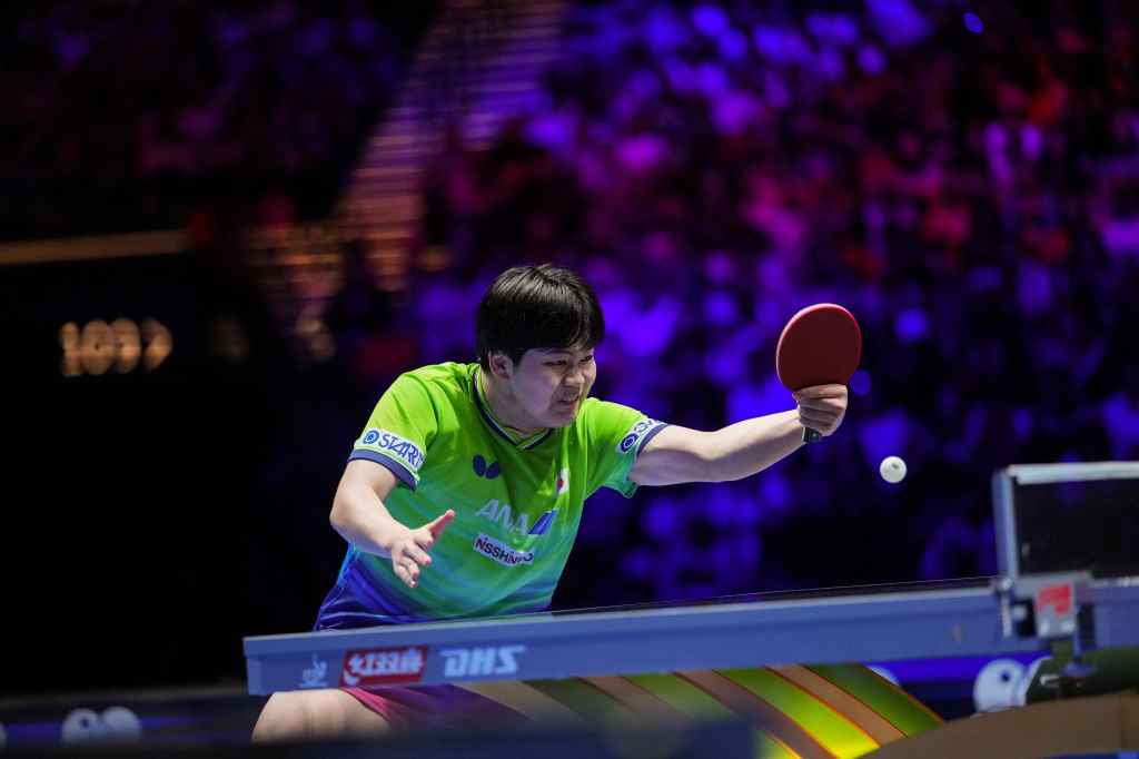 女子世界盃后冠,由兩位中國球手孫穎莎與王曼昱爭奪。孫穎莎火力全開,連贏三局,及後雖被王曼昱奮起追回一局,但隨即在第五局重新掌控比賽節奏,穩住陣腳再下一城,以局數4比1(11比9、11比8、13比11、8比11、11比7)獲得最終勝利,成功衛冕。