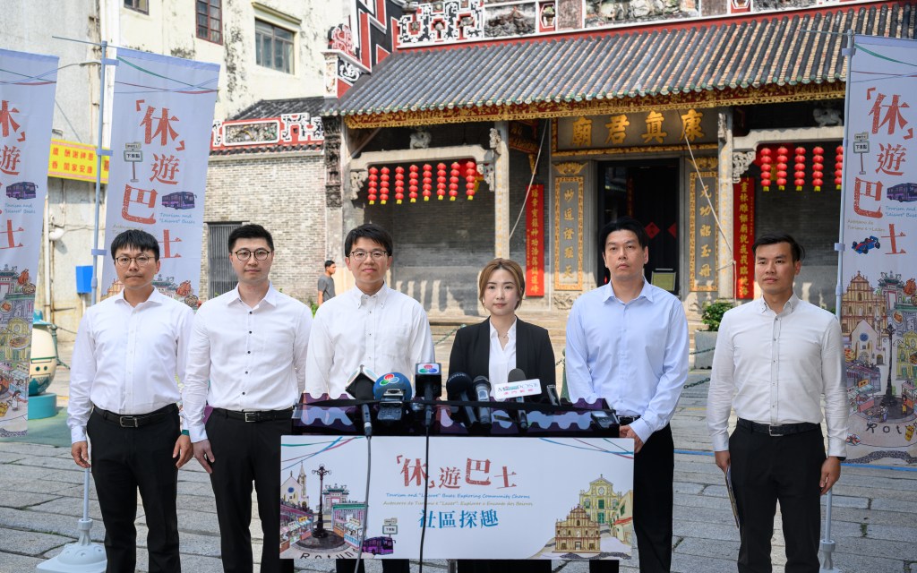 為促進社區經濟發展及社區中小企拓流引客,特區政府協同六大綜合度假休閒企業推出「『休』遊巴士.社區探趣」,經濟及科技發展局、旅遊局、博彩監察協調局、交通事務局、治安警察局、市政署於日前在康公廟前地舉行聯合新聞發佈會。