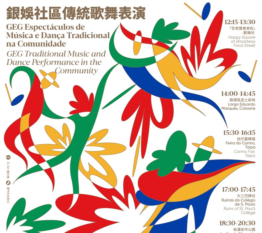 由文化局主辦,銀河娛樂集團全力支持的「銀娛社區傳統歌舞表演」於11月4及5日,分別在「澳門百老匯」之「百老匯美食街」、路環馬忌士前地、氹仔嘉模墟、大三巴牌坊以及祐漢街市公園,為公眾帶來合共10場熱情洋溢的傳統歌舞表演。