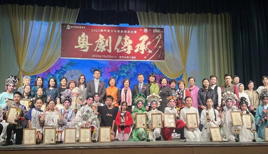 由澳門粵劇曲藝總會主辦、善明會協辦、文化發展基金資助之「2023澳門青少年粵劇傳承比賽」10月28日在澳門永樂戲院圓滿舉行。是次比賽吸引本澳共有23支隊伍競逐青少年粵曲及粵劇組之獎項。