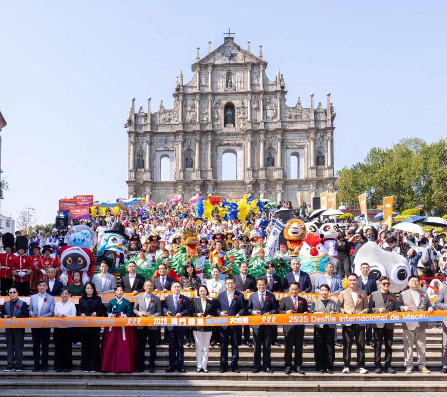 慶祝澳門回歸祖國二十六周年「2025澳門國際幻彩大巡遊」於3月23日在大三巴牌坊起步,活動由文化局、澳娛綜合度假股份有限公司、金沙中國有限公司、美高梅、銀河娛樂集團、永利渡假村(澳門)股份有限公司及新濠博亞娛樂聯合主辦,秉承宣揚「愛.和平.文化共融」的理念,今年澳門當選「東亞文化之都」,多隊「東亞文化之都」藝團亮相澳門,今年大巡遊總參演人數達約1,800人。大巡遊活動呈現世界多元人文風情,突顯澳門作為文化城市的魅力和「一基地」功能,通過演藝盛事打造澳門作為中西文明交流互鑒的重要窗口。