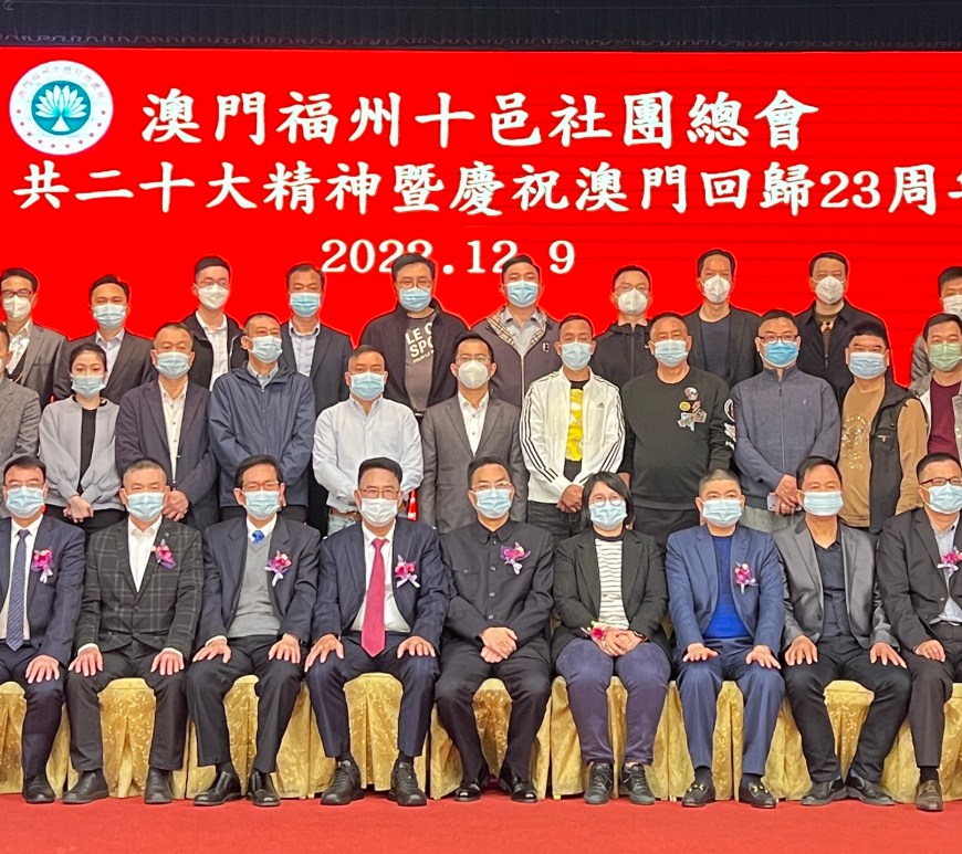 澳門福州十邑社團總會日前在萬豪軒酒家舉行「學習中共二十大精神暨慶祝澳門回歸二十三周年晚宴」。全國政協委員及澳門特區政府行政會委員張宗真、澳區全國人大代表、立法議員施家倫、立法議員、澳門福建同鄉總會執行會長宋碧琪、澳門福建省澳區政協委員聯誼會會長呂聯選、澳門福建同鄉總會理事長黃天松等嘉賓出席。負責人勉勵全體成員學習、宣傳、貫徹好黨的二十大精神,堅定支持落實「愛國者治澳」的原則,為推動澳門與家鄉在各領域合作發展貢獻綿力。