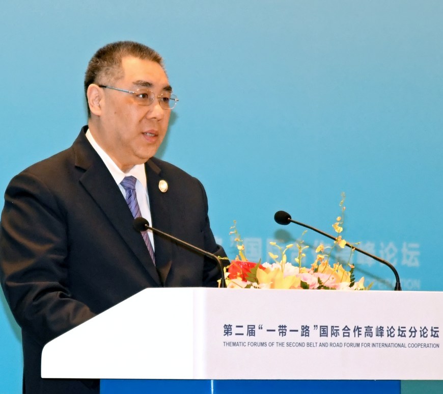 行政長官崔世安及澳門特區代表團成員出席第二屆「一帶一路」國際合作高峰論壇開幕式,聽取國家主席習近平在開幕式上發表的主旨演講。