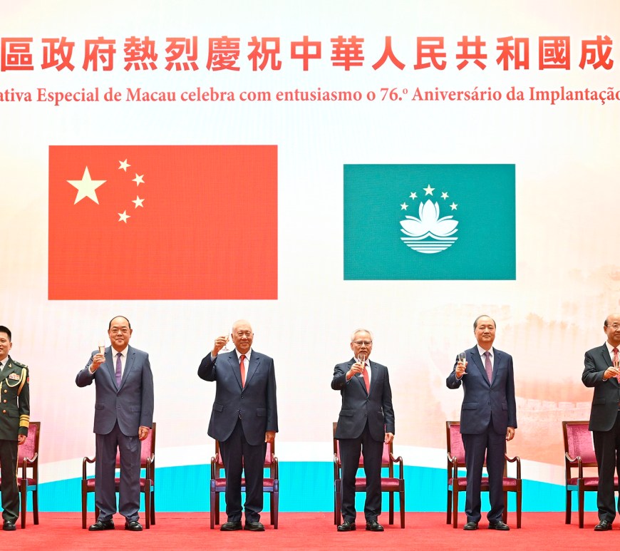 特區政府於10月1日舉行慶祝中華人民共和國成立76周年招待酒會。行政長官岑浩輝致辭時表示,祖國繁榮昌盛為澳門的發展進步提供了強大底氣,我們將乘着國家發展的東風,不斷開創「一國兩制」事業高質量發展新局面。特區政府將致力實現法治澳門、活力澳門、文化澳門、幸福澳門的美好願景,為實現強國建設、民族復興偉業作出新的更大貢獻。