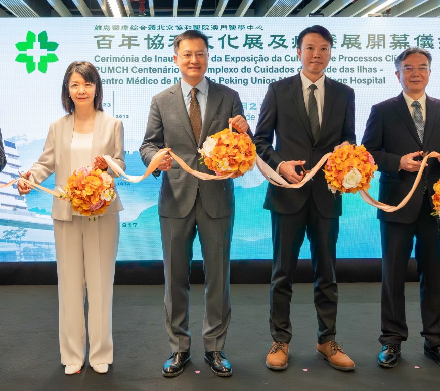 離島醫療綜合體北京協和醫院澳門醫學中心於9月21日在綜合服務行政大樓五層文化展廳舉行院慶系列活動—「百年協和文化展及病歷展開幕儀式」。協和澳門醫學中心院長吳文銘,文化局局長代表、副局長蔡健龍,協和澳門醫學中心策略發展委員會委員、財政局代局長何燕梅,協和澳門醫學中心策略發展委員會委員、衛生局副局長陳永華,協和澳門醫學中心策略發展委員會委員副主席、醫學專科學院專業委員會主席李展潤,澳廣視執行委員會主席羅崇雯以及澳門日報社長陸波擔任主禮嘉賓,共同為「百年協和文化展及病歷展」開幕剪綵。