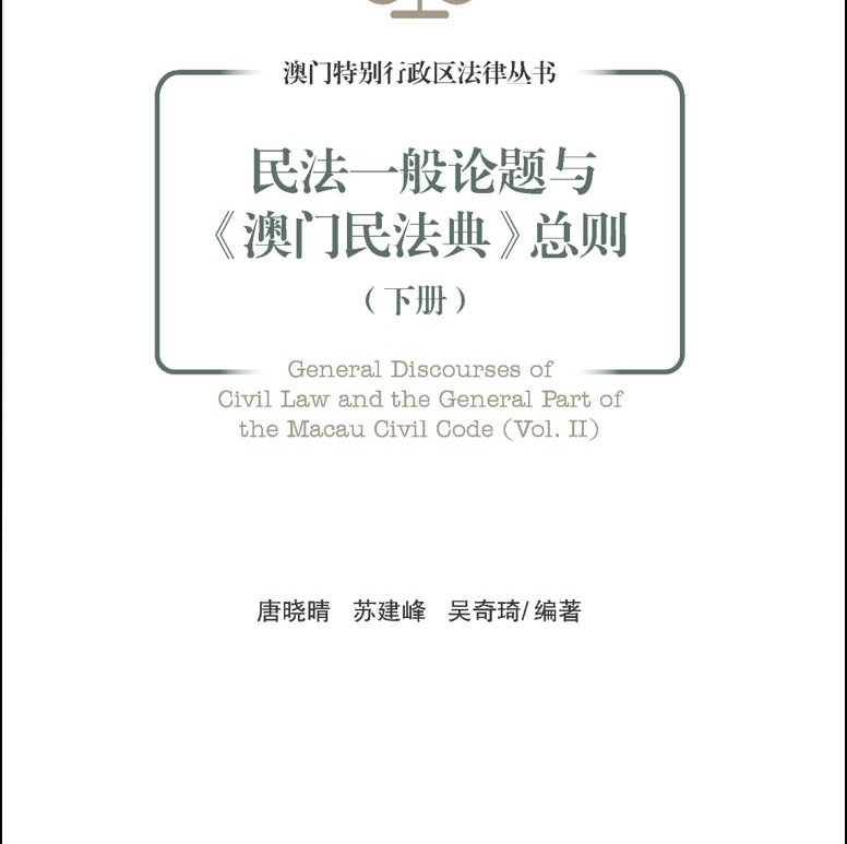 「澳門特別行政區法律叢書」之一,由唐曉晴、蘇建峰及吳奇琦編著的《民法一般論題與〈澳門民法典〉總則》(下冊),經已由澳門基金會與社會科學文獻出版社聯合出版,並於全國包括澳門地區同時發行。該書在《澳門民法典》總則的基礎上對民法的一般論題進行了釐清,既為民法的科學研究提供了理論依據,亦形成了以民法基本範疇為結構標準的教材,對澳門民法教學有一定的指導意義。
