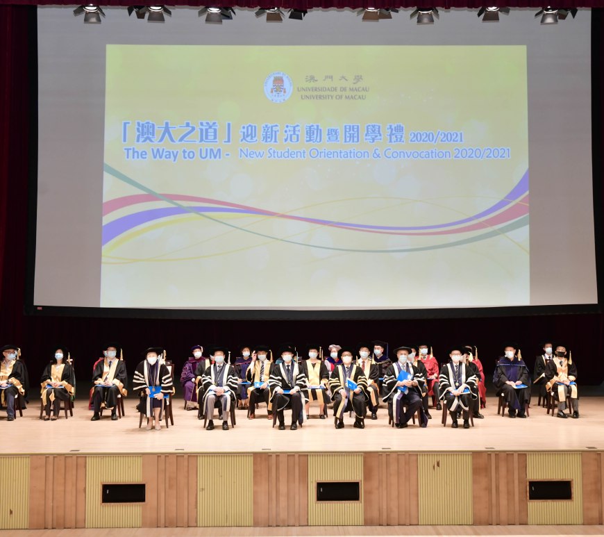 澳門大學日前舉行2020/2021學年新生開學禮,歡迎3,000多名本科和研究新生,澳大校長宋永華亦藉此為他們上了在澳大的第一堂課。受疫情影響,今年開學禮結合線上及線下的形式進行,現場有300名新生及教職員出席,其他學生則透過新生專頁在線上觀看典禮。