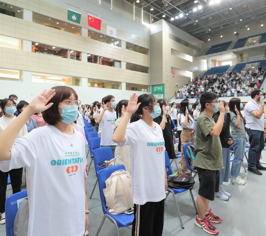 澳門理工學院2020/2021學年開學典禮於9月3日下午在澳門理工學院體育館線上線下同步舉行。開學典禮上升國旗及奏唱國歌,澳門理工學院今年迎來一千一百名來自澳門、大灣區、葡語國家及其他海內外本碩博課程新生。開學典禮弘揚愛國愛澳傳統,理工師生員工見證全體新生以「理工心.新生情」宣誓加入理工大家庭,場面熱鬧感人。