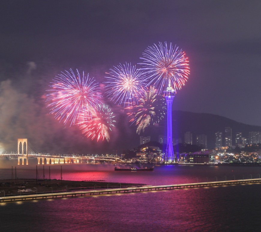 由澳門旅遊局與珠海市橫琴新區管理委員會合辦的「月滿琴澳國慶煙花表演」於10月1日晚在澳門旅遊塔對出海面上演,慶賀中華人民共和國成立71周年。