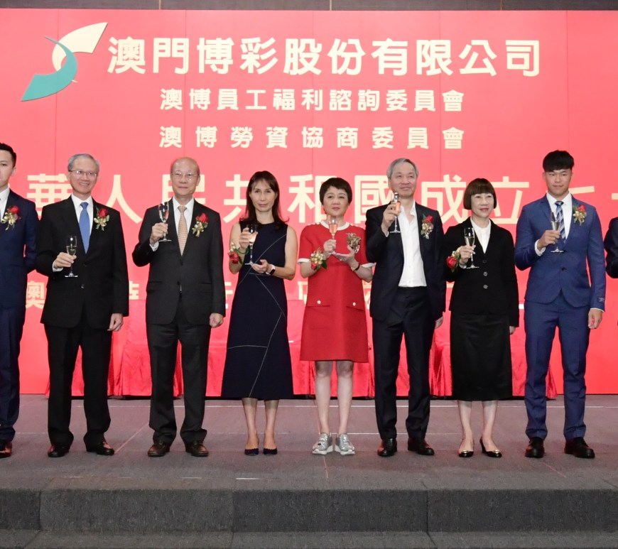 澳門博彩股份有限公司聯同澳博員工福利諮詢委員會、澳博勞資協商委員假澳門旅遊塔四樓宴會廳舉行慶祝中華人民共和國成立七十周年國慶酒會。澳博董事局主席何超鳳女士、常務董事及行政總監兼福諮會主席梁安琪女士、董事蘇樹輝博士、營運總裁吳志誠先生、澳博勞資協商委員會顧問黃顯輝律師,以及合計近六千名員工出席國慶酒會,場面歡欣熱鬧。為遷就員工的上班時間,酒會分中午及下午兩場舉行。