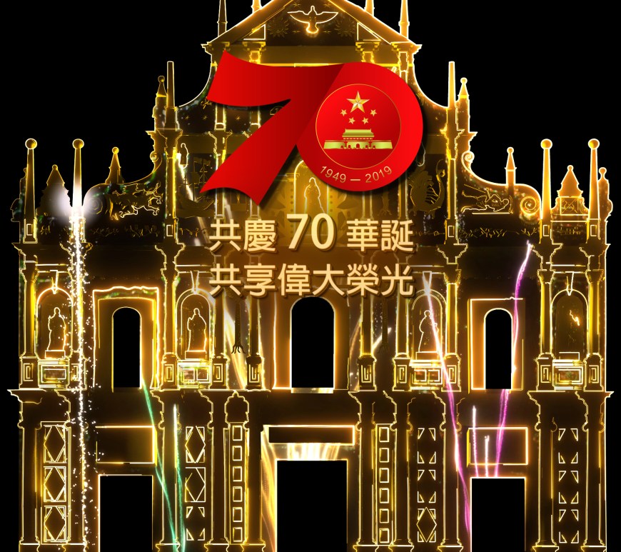 為慶賀中華人民共和國成立70周年,旅遊局於9月29至10月1日連續三晚在大三巴牌坊特別呈獻「共慶70華誕 共享偉大榮光」為主題的光雕表演,與居民和旅客一起歡度節慶。