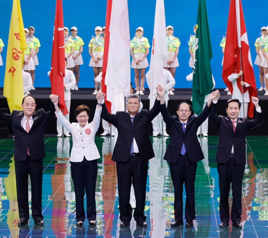 由國家體育總局主辦、陝西省人民政府承辦的中華人民共和國第十四屆全國運動會,於9月27日晚上8時於西安奧體中心體育館舉行閉幕式,國務院總理李克強在儀式上宣佈全運會閉幕。行政長官賀一誠與廣東省省長馬興瑞及香港特別行政區行政長官林鄭月娥參加了第十五屆全國運動會會旗交接儀式。